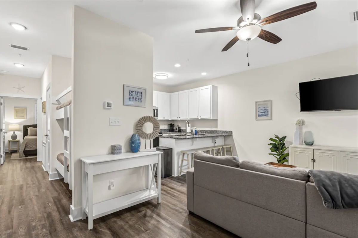 This condo is located on the first floor and has one full bedroom, hallway bunks and 2 full bathrooms. There is a fully stocked kitchen & stackable W/D! To get your vacation started, we also provide the following: