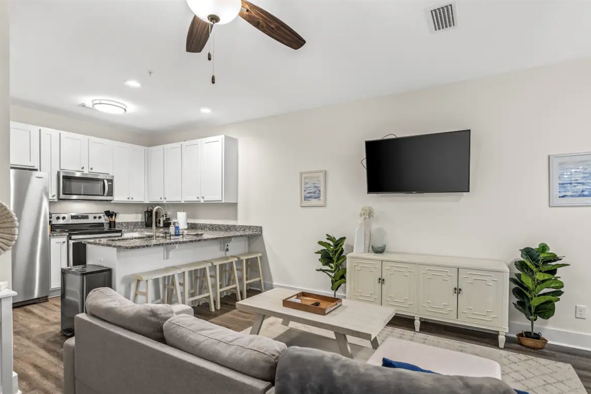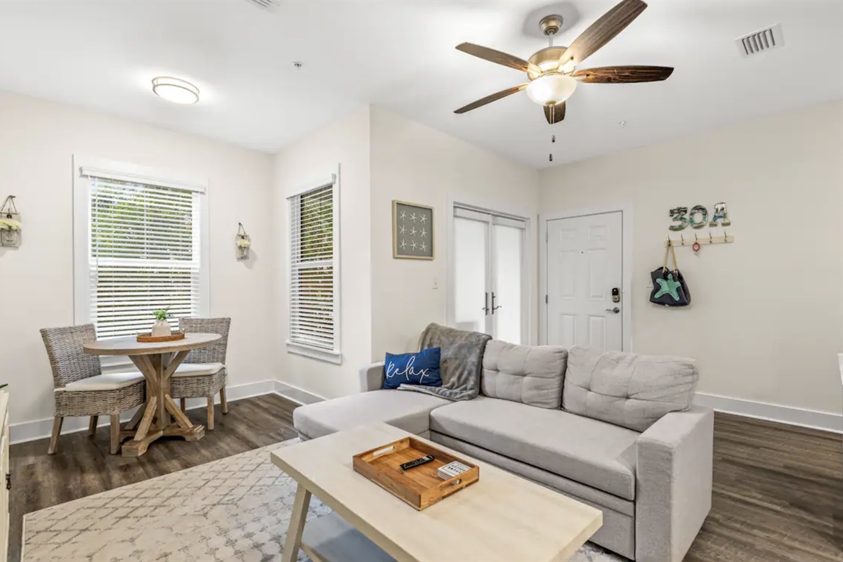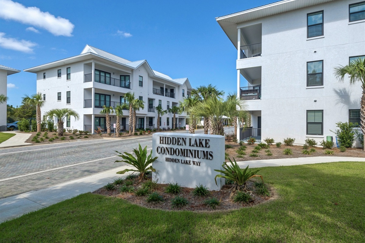 Hidden Lake is a recently constructed condominium development on Highway 30a on the western end of Santa Rosa Beach, FL. This unit has a beautiful patio to enjoy your morning coffee (or evening wine!) al fresco. You will love the calming, simplistic decor of this unit as well as the ease of entrance to the space. There is ample parking for your vehicle(s) and (gas powered) golf carts. We look forward to hosting you!