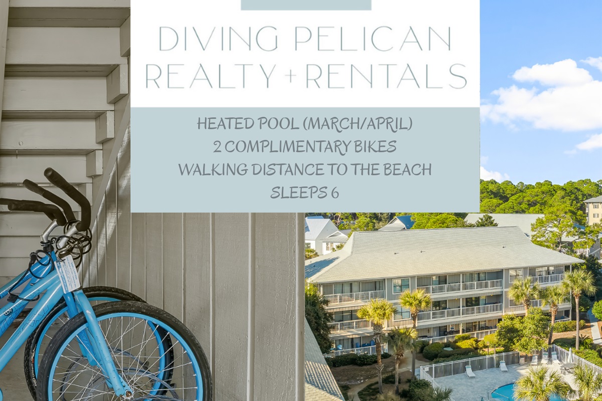 2 Bikes! Location!Walk to beach & Bike to Seaside!